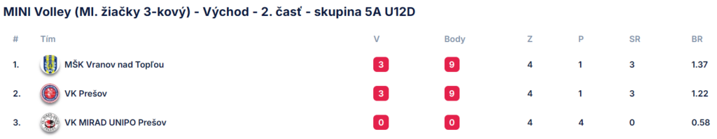 V nedeľu (13. apríla 2025) pokračovala súťaž Oblasti Východ pod záštitou Slovenskej volejbalovej federácie v kategórií mladších žiakov a žiačok v 6-kovom volejbale. V tejto sezóne má Mirad v súťaži už 2 družstvá. Posledný 10. turnaj tejto kategórie sa odohral v Prešove. Z dôvodu nepárneho počtu družstiev tento turnaj vynechalo naše družstvo „A“. Kým tím „B“ Milana Kundľu zbiera prvé súťažné skúsenosti a v nadstavbe si zmerajú sily o umiestnenie, zverenci trénera Ľuboša Macka „A“ zabojujú v nadstavbe o účasť na Majstrovstvách Slovenska.