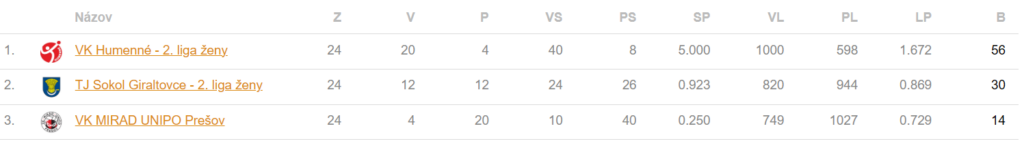 VK MIRAD UNIPO Prešov vs. VK Humenné 2. liga ženy 0:2 (-7, -7,)