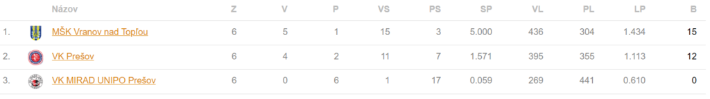 VK MIRAD UNIPO Prešov „B“ – VKM Stará Ľubovňa 0:2